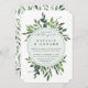 Gold geometric frame leafy wedding invitation. Gold effect metallic frame with leafy watercolor foliage decoration. Part of a collection.