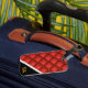Of of the two luggage tags have some scratch on it.