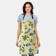 A vintage-style pattern apron featuring bright lemons with lush green leaves, accented by delicate white and pink flowers, all set against a cheerful yellow background. This nostalgic botanical design captures the essence of sunny days, evoking a timeless summer feel perfect for seasonal charm and nature-inspired aesthetics.