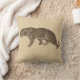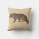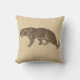 Stylish throw pillow with vintage brown tinted leopard side view illustration on light tan "burlap" background