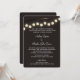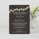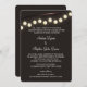 Strand of vintage industrial style light bulbs decorate this whimsical wedding invitation with a dark brown background or select a different background colour as preferred.