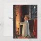 Fine art vintage holiday card originally produced in the early 1900s. Card shows a cute little girl at nighttime warming her hands by a fireplace. There is a full moon outside and traditional stockings are hanging by the fire. This reproduced classic print was digitally restored to reduce age spots and to enhance colour for optimum print quality.