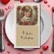 This guest paper towel design features a charming little girl in a frame of red roses . It comes with the text "Happy Valentine". You can customise that now . Great not only for Valentine - day , but also for her retirement party and bridal shower.