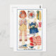 This postcard is a reproduction of a vintage postcard showing Little Miss Muffet as a paper doll, with clothes to wear and a spider to sit down beside her.