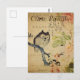 Vintage Little Owl Pink Roses French Postcard