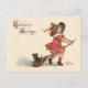 Vintage Little Witch Halloween Greetings Postcard