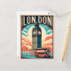• This charming vintage-style postcard captures the iconic sights of London, featuring a classic double-decker bus and the famous Big Ben clock tower.
