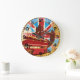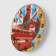 keep time with a touch of english nostalgia with this vintage london wall clock. the clock face features a stunning artistic rendering of a red double decker bus and tower bridge against a distressed union jack background. its warm tones and grunge-style texture make it a perfect decorative piece for a kitchen, home office, or travel-themed room. this clock is a wonderful gift for anglophiles and history buffs, bringing the historic and timeless atmosphere of the british capital into your home decor.