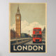 Capture the classic charm of England's capital with this vintage-inspired travel poster. The design features two of London's most famous symbols: the iconic Big Ben clock tower and a classic red double-decker bus. The clean lines and retro colour palette create a nostalgic feel, evoking the city's timeless elegance and bustling energy.