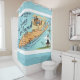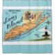 A colourfully illustrated, vintage map of Long Island New York. This is an old postcard repurposed on a fun shower curtain.