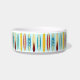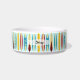 This is a heavy, durable bowl decorated with Tibbies of many colors, the perfect size for hungry/thirsty Tibs. The design is interesting and printing clear.