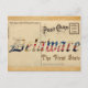 This vintage look old postcard has the state of Delaware on it with a eagle flag design in the letters. Give this to anyone or keep it as a collectable.