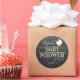 Popular chic, vintage chalkboard look-Baby shower guest favour sticker in yellow. A cute little yellow baby stroller or carriage, chalkboard look background. Pretty and swirly typography text, customised with the mother-to-be name and baby shower date. Add matching products! Please visit my store "The Hungarican Princess" at www.zazzle.com/hungaricanprincess*. Look in my "Oh Baby" department category. Congratulations!