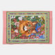 This beautiful vintage floral kitchen towel will appeal to cat lovers and cat owners and specifically admirers of the wonderful, whimsical work of famous English cat artist Louis Wain. The painting features a beautiful brown tabby cat with big wide innocent green eyes staring out at the viewer from a corner of an English garden filled with beautiful summer flowers. I've added a border of vintage art nouveau roses plus another border taken from another cat portrait by Wain, one of his wallpaper cats. The poster would be the perfect gift for admirers of vintage cat art. You can change the colour of the pink border to suit.