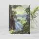 Vintage illustration Victorian love and romance design with a young couple hugging under palm trees in the light of a full moon. A ship is in the sea harbour and mountains in the distance.