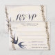 Vintage Love Bird Navy Wedding RSVP Card