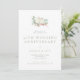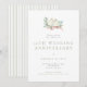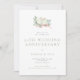 A beautiful vintage style wedding anniversary invitation featuring a watercolor illustration of two birds sitting in a branch with a pink bow and a simple modern serif font in sage green and grey.