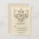 old vintage wedding reply cards with love birds in the cage. Decorated with antique frame and victorian roses drawing.