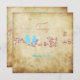 PixDezines' popular love birds on faux parchment. Blue love birds on a branch of colourful blossoms DIY background colour, trim, fonts, and fonts' colours.