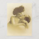 Vintage Art Deco style sepia photograph from the roaring twenties of a romantic love couple kissing.