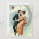 Vintage illustration love and romance image with a couple in love kissing while sitting on a crescent moon.