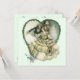 Vintage illustration love and romance image by Harrison Fisher, 1908. A Victorian couple dressed in a tuxedo and wedding gown kissing after their wedding vows inside of a heart made of holly. The happy newlyweds kiss. Great image to use for a December wedding.