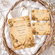 This enchanting baby shower design features a magical vintage storybook scene filled with charming wizard-inspired details. Delicate illustrations of potion bottles, spell books, antique keys, candles, and a wise little owl surround an ornate decorative frame, creating a whimsical atmosphere perfect for a magical celebration. The warm parchment background and soft watercolor textures give the design a nostalgic fairy-tale aesthetic inspired by classic fantasy illustrations. Ideal for wizard-themed baby showers, magical woodland celebrations, or whimsical fantasy gatherings welcoming a little wizard on the way.
