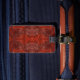Abstract texture of vintage mahogany or expensive tanned genuine leather. The elegant golden brown pattern in noble hues is perfect for a luggage tag, making it a desirable gift for any occasion, especially for a traveller.