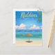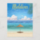 Vintage Maldives Tropical Beach Parasol Travel Postcard