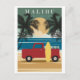 Anyone would love to receive this vintage travel poster postcard featuring a retro illustration of an ocean beach in Malibu, California!