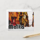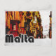 Trendy vintage malta travel artwork showing the architecture and scenery of the island in the mediterranean sea.