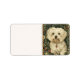 Charming illustration of a sweet Maltese puppy in an old English garden in the style of William Morris.