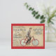 vintage man riding red bicycle with ad for Crescent Bicycles and aeroplane propeller in background