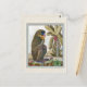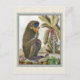 Postcard with a vintage natural history illustration of a male mandrill sitting next to a tree with fruit and flowers at its feet, and mountains and a house in the background. Digitally cleaned and enhanced antique image from Collection Des Animaux Quadrupeds by Georges-Louis Leclerc, Comte de Buffon, 1754. Framed and backed with a light tan parchment texture.