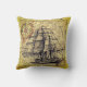 Throw pillow with image of vintage maps of North and South American and Europe with a vintage sailing ship.
