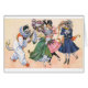 Vintage artwork by Arthur Thiele depicts a group of four happy and excited cats dressed for Mardi Gras who are stepping out for a festive night of fun. The German artist, Carl Robert Arthur Thiele (1860-1936) commonly went by the name Arthur Thiele. He was an illustrator of books, sheet music and postcards. He was famous for his comical anthropomorphic animals dressed in clothing and depicted in human-like scenes. Dachshunds were a favourite subject of his. In addition to animals, other subjects he illustrated were sports postcards, vegetables brought to life, snowmen, bathing beauties, and WW1 era propaganda postcards. The Internet is full of references confusing Carl Robert Arthur Thiele with another German painter of his time named Julius Arthur Thiele who painted landscapes. They are not the same artist. This card is blank inside for your own message.