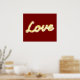 Vintage marquee lights accent this love poster on a red background. This makes an easy decoration for wedding parties, or just at home. Scroll down to see the coordinating cushion.