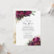 Vintage marsala (burgundy plum) and gold shabby-chic floral drive through bridal or baby shower invitation with accents of plum and black.