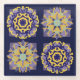 Beautiful floral mandala pattern patch inspired by vintage Mediterranean tile designs, in tones of blue, teal and gold.