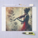 This elegant illustration portrays a young violinist in a red dress, immersed in a nostalgic and poetic atmosphere. The contrast between her graceful profile and the aged background with vintage floral details creates a timeless and evocative effect. The violin, with its warm coppery tones, adds a touch of refinement and passion, while the grunge-textured backdrop evokes the charm of antique art and the passage of time.