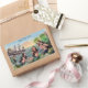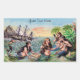 These stickers feature a vintage piece of art with mermaids. Four mermaids sit on the shore while an old fashion boat is in the sea beyond. There is a custom space on top for a name or message.
