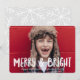 A vintage-modern typographic design a Holiday card featuring your full-bleed photo as the centerpiece along with the cheerful sentiment "Merry & Bright". On the back of the card, change the colour of the background to coordinate the colours of your photo.