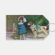 Beautiful Illustration of a Vintage "Merry Christmas", stylish dressed Girl with a dog and tree gift tag. This holiday personalised gift tag will look great on all Christmas presents or gifts. You can Personalise the card by clicking the "Customise it" button and add text. Find more matching items at the ingeinc.com store.