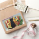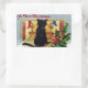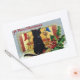 Vintage Merry Christmas Kitten Fireplace Holly Rectangular Sticker