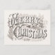 Vintage Merry Christmas Retro Typography Postcard. Beautiful black and white vintage Christmas typography holiday card. Simple old world Christmas charm.
