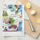 A vintage postcard map of Michigan delightfully illustrated and very colourful repurposed on a kitchen towel! Great gift!