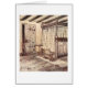 This is a vintage illustration by Arthur Rackham for a book of Shakespeare's work, "A Midsummer Night's Dream" (1908). It features elves or goblins peeking in the doorway of a home during the night where a baby sleeps in a rocking cradle while the parents sleep in a curtained bed. The card is blank inside for your handwritten message.