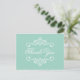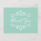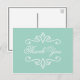 Cute, vintage mint green Graduation thank you postcard. The beautiful postcard features a mint green background, vintage embellishments, and classic typography. Other colours and matching products are available at the Carded Design store.