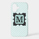 Vintage Mint Green Stripes Pattern Black Monogram