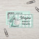 Back: Clean and modern layout in solid mint green. Includes space for all your essential contact information.